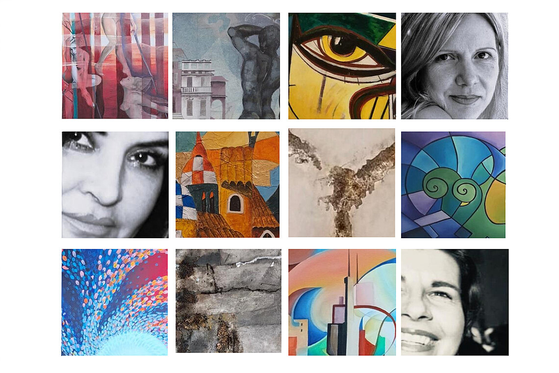 Die drei Künstlerinnen Valentina Panzeri, Tecla Sardini und Caterina von Canal verbinden ihre italienischen Wurzeln und ihre große Leidenschaft für die Malerei, die sie seit vielen Jahren auch im Verein „Freisinger Künstler“ auf verschiedenen Wegen einbringen.